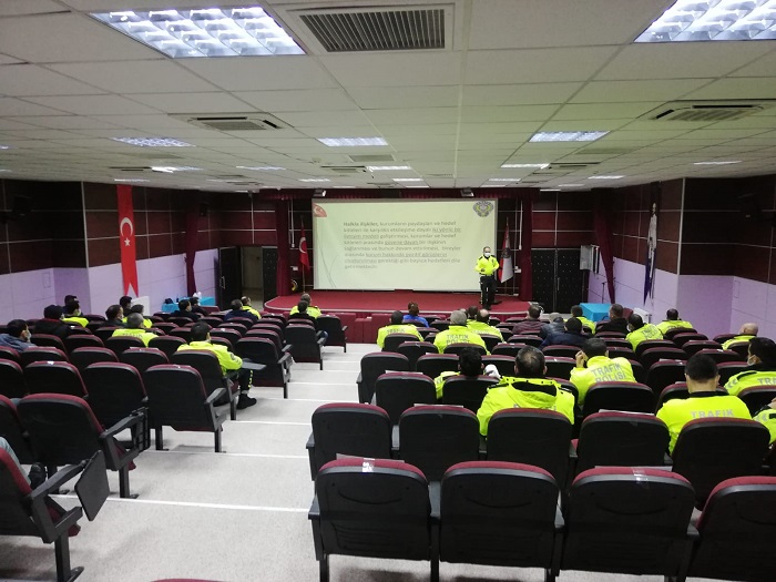 Bu çerçevede Müdürlüğümüz Konferans salonunda düzenlenen eğitime, Korona virüs salgınıyla mücadele kapsamında maske ve sosyal mesafe kurallarına özen gösterilmek suretiyle 22-23 Aralık 2020 tarihleri arasında Psikolog Şaziye DEMİRTAŞ SOLAK tarafından ilimizde görevli trafik birimlerinde  bulunan personele yönelik “Trafik Denetimlerinde Halkla İlişkiler ve İletişim Eğitimi” verilmiştir” denildi.