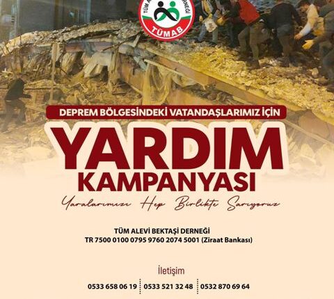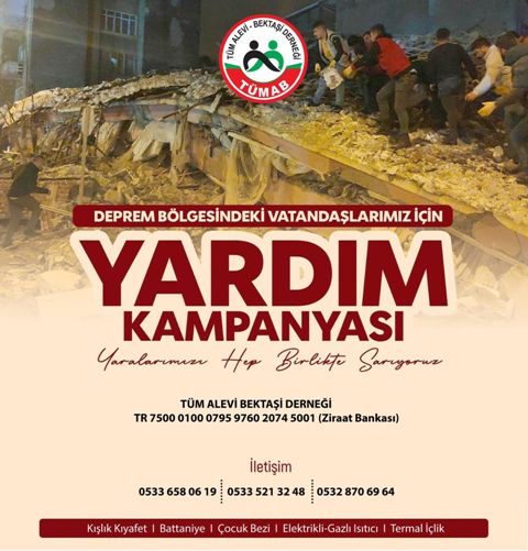 Merkezi Ankara’da Bulunan Tüm Alevi Bektaşi Derneği tarafından Kahramanmaraş Pazarcık merkezli meydana gelen ve yaklaşık 10 ilimizde depremden etkilenen tüm vatandaşlarımıza ulaştırılmak üzere yardım kampanyası başlattı.