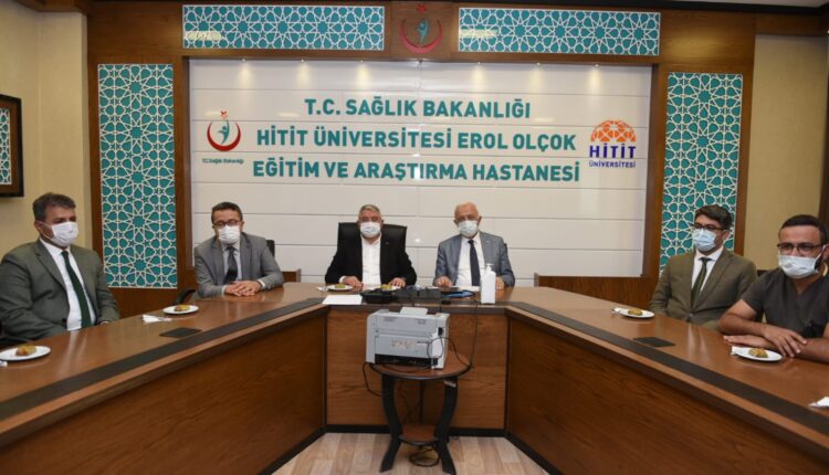 Belediye Başkanı Dr. Halil İbrahim Aşgın, İl Sağlık Müdürü Uzm Dr. Ömer Sobacı’ya, Hitit Üniversitesi Erol Olçok Eğitim ve Araştırma Hastanesi Başhekimi Prof. Dr. Mesut Sezikli’ye, hastane doktorlarına ve sağlık çalışanlarına başarı belgesi, çiçek ve hediye takdim etti.