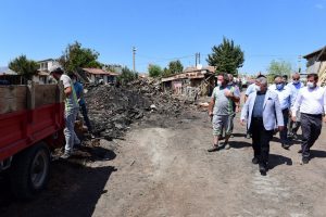 Başkan Aşgın, keresteci esnafına geçmiş olsun dileğinde bulunurken yangınzede esnafa zor günlerinde destek vereceklerini de dile getirip “Belediye olarak elimizden ne gelirse yapmaya hazırız.” dedi.