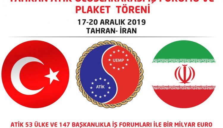 ATİK Ticaret işbirliği Konseyi Tahran ATİK uluslararası iş formu ve plaket töreni 17 – 20 Aralık 2019 tarihinde yüksek protokol katılımları ve ziyaretleri ile gerçekleşecektir.
