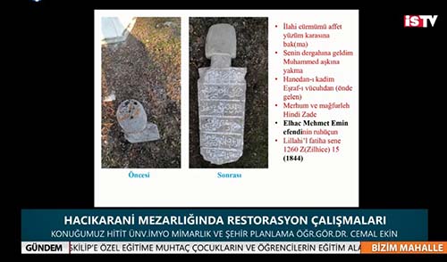 Dr. Cemal Ekin, restorasyon çalışmalarını her Çarşamba 10.00 ile 12.00 saatlerinde gerçekleştirdiklerini, Hacıkarani’den sonra diğer mezarlıklarda da uygulamalarını devam ettireceklerini, mezar taşlarındaki Osmanlıca yazıları günümüz Türkçe’sine çevirerek tarihi mezar taşlarının yanına monte edeceklerini belirtti.