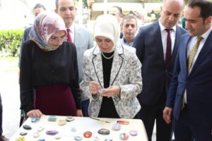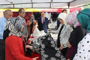 Öğrenciler tarafından hazırlanan eserleri inceledi. Bilhassa Kargı Halk eğitimi Merkezi Müdürlüğü kursiyerleri tarafından yapılan el sanatları ürünlerini incelerken, unutulmaya yüz tutmuş eserlerden olan tarihi kargı bezinden dokunan kumaşları çok beğendiğini ifade etti. Kargı bezi hakkında yetkililerden bilgi aldı.