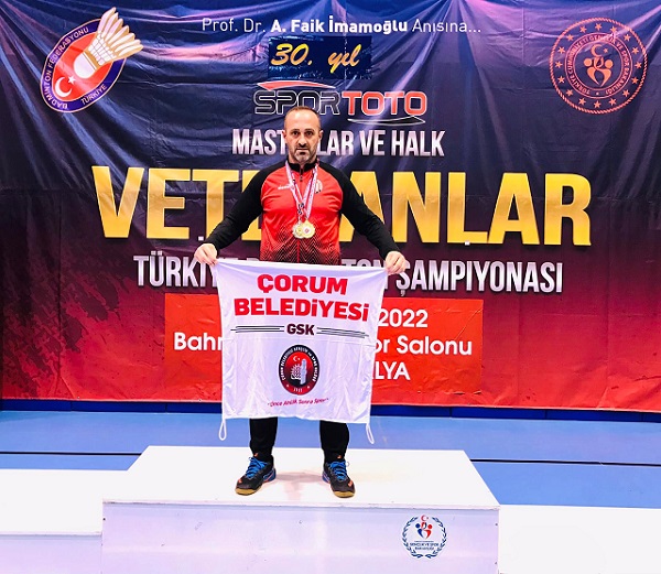 Badmintonda Çorum Belediyesi Gençlik ve Spor Kulübü Masterlar Türkiye Badminton Şampiyonasında,+40 Yaş master tek erkekeler kategorisinde Türkiye Şampiyonu oldu.