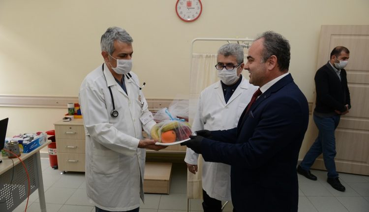 Belediye Başkanı Dr. Halil İbrahim Aşgın, sağlık çalışanlarına meyve ikramında bulundu.