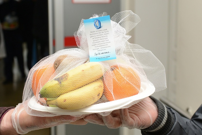 Sağlık çalışanlarına meyve tabaklarını Belediye Başkan Yardımcısı Turhan Candan teslim etti.