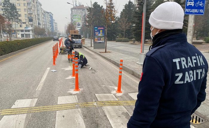 BELEDİYE, GAZİ CADDESİNE BİSİKLET YOLU YAPIYOR