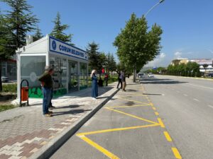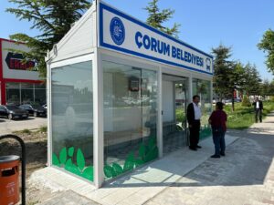 Çorum Belediyesi, klimalı otobüs duraklarını artık kendi atölyesinde üretiyor. Makine İkmal Bakım ve Onarım Müdürlüğü’nde yapılan ilk klimalı durak, Hitit Üniversitesi Erol Olçok Eğitim ve Araştırma Hastanesi karşısına kuruldu.