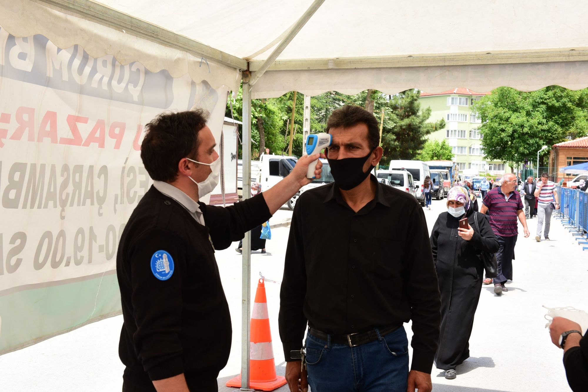 Çorum Belediyesi, koronavirüs tedbirleri kapsamında denetim ve önleyici çalışmalarını büyük bir titizlikle gerçekleştiriyor. Pazartesi, Çarşamba ve Cumartesi günleri kurulan semt pazarlar girişlerinde görevliler Pazar alışverişi için gelenlerin ateşlerini ölçüp, maskesi olmayanlara maskelerini veriyor. Pazar girişlerine konulan dezenfektan üniteleri de alışveriş için gelen vatandaşlara hizmet veriyor.