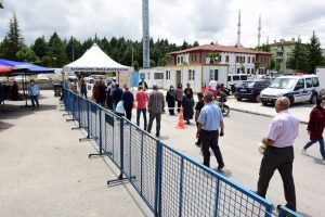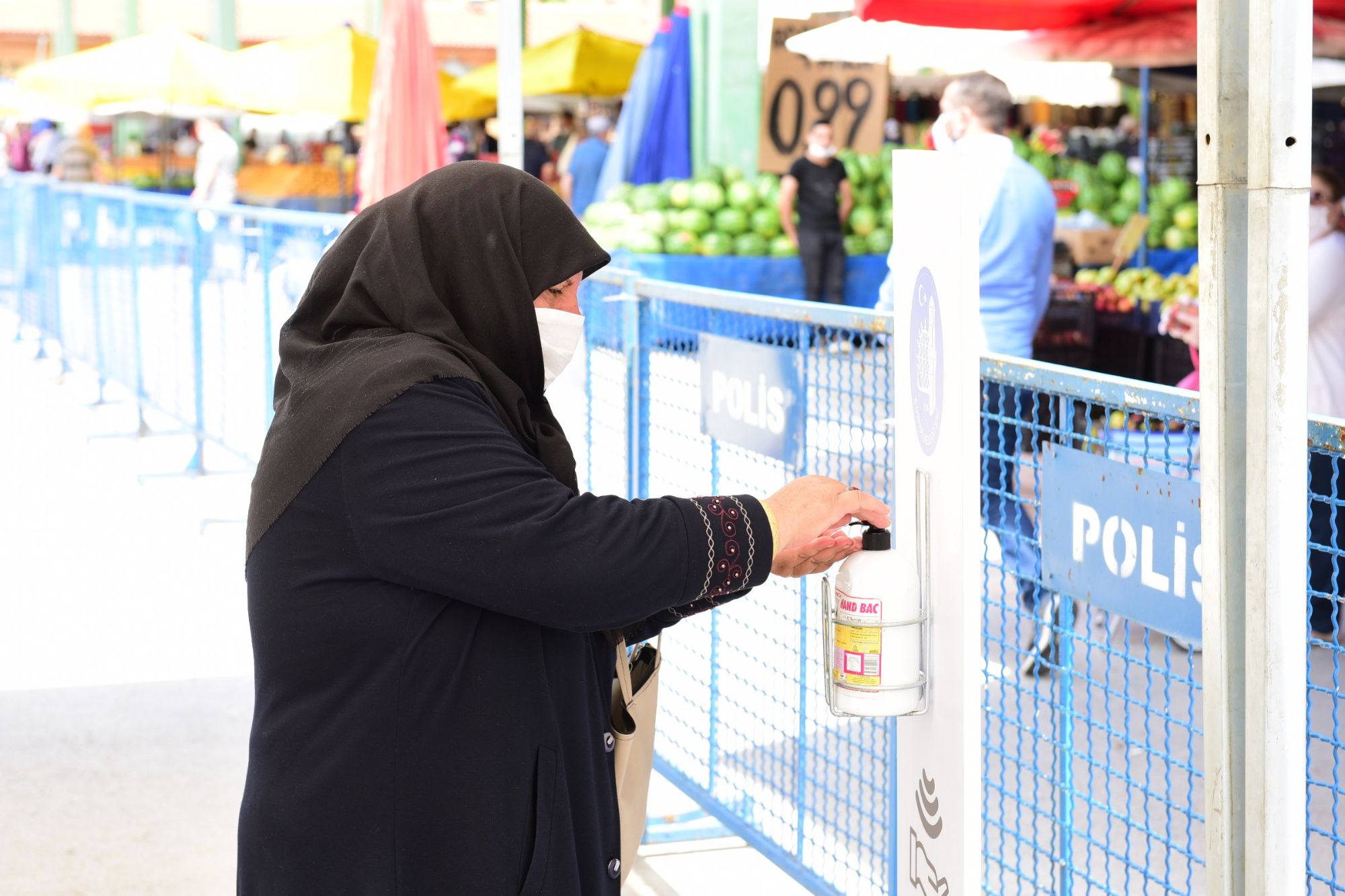 Pazar yerlerine girişlerde zabıta ve özel güvenlik görevlileri tarafından tedbirlerin aksatılmadan sürdürüldüğünü ifade eden Belediye Başkanı Dr. Halil İbrahim Aşgın, Pazar tezgâhları arasında sosyal mesafenin korunduğunu kaydetti.