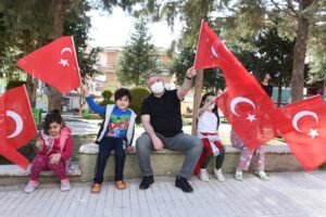 Bayram şarkıları ve marşlar eşliğinde şehrin cadde ve sokaklarını dolaşan eğlence tırı bayramın asıl sahibi çocukların pencere, balkon ve kapılarının önünde bayram sevincini yaşamasını sağladı. Bayram tırı etkinliğinde çocukların sevincine ortak olan Belediye Başkanı Dr. Halil İbrahim Aşgın, “Bugün çok önemli bir gün, istiklalimizin başladığı, egemenliğin millete verildiği, hakimiyet kayıtsız şartsız milletindir dendiği günün adı bugün. Aradan 101 yıl geçti hala o başlangıç noktasındayız. ‘Egemenlik kayıtsız şartsız milletindir’ diyoruz. Bize zincir vurmak isteyenler, bizi mahkum etmek isteyenler Kurtuluş Savaşında, Dumlupınar’da Çanakkale’de, 15 Temmuz’da gerekli dersi aldı ve gitti. Bundan sonra da öyle olacak. Yavrularımızın gözlerine bakıyorum emanet ehil ellerde. Allah’ın izniyle bu millete bundan sonra da kimse diz çöktüremeyecek. Ebediyete kadar milletimiz var olacak, devletimiz var olacak. Bugün 101.’sini kutladığımız bayramımızın, yavrularımız 150. yılını, 200. yılını kutlayacak ve ebediyete kadar da kutlanacak. Buna yürekten inanıyorum. Bu bayramı çocuklarımıza armağan eden Mustafa Kemal Atatürk ve tüm şehitlerimizi rahmetle, minnetle ve şükranla anıyorum” dedi.