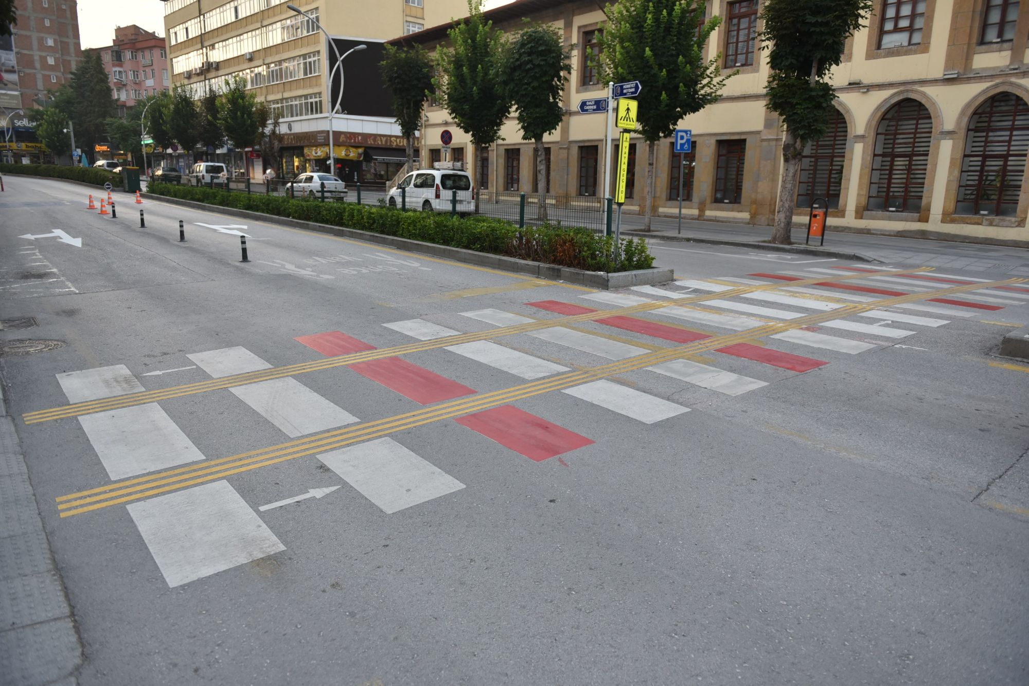 İçişleri Bakanlığı öncülüğünde başlatılan ve yurt geneli uygulanan yaya güvenliğini önceleyen “Yayalar Kırmızı Çizgimizdir” uygulaması 2021 yılında hayata geçmişti. Eskiyen kırmızı çizgiler Çorum Belediyesi tarafından yenilendi.