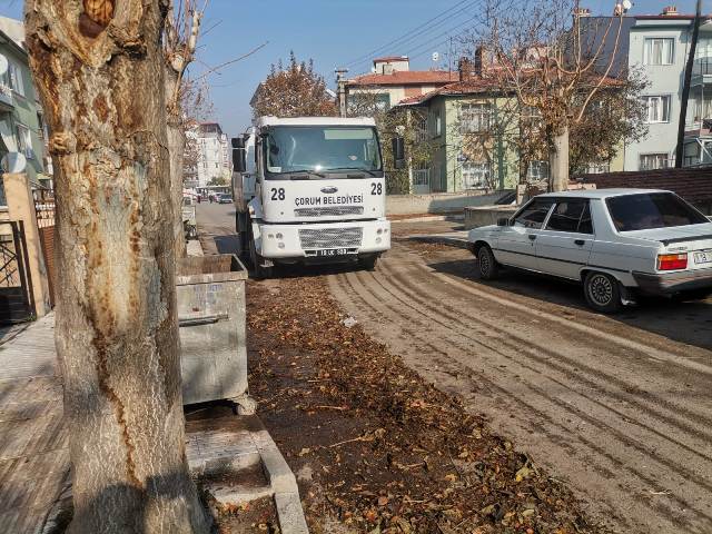 Çorum Belediyesi, sonbaharın gelmesiyle birlikte kaldırım ve yol kenarlarında oluşan yaprakları temizlemek için mıntıka temizliklerini aralıksız sürdürüyor.