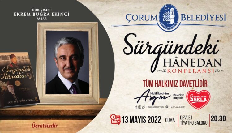 Şehrin kültürel hayatına yön veren Çorum Belediyesi birbirinden güzel etkinlikler yapmaya devam ediyor. Belediye, Osmanlı hanedanının sürgüne gönderilişini konu alan “Sürgündeki Hanedan” kitabının yazarı Ekrem Buğra Ekinci’yi Çorumlularla buluşturuyor.
