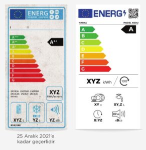Bu yönetmelik ve akabinde 25.03.2021 tarihinde yayımlanan uygulama tebliğleri kapsamında, yeni enerji etiketiyle birlikte ürünlerin enerji sınıfları ve performans kriterleri yeniden belirlenmiştir. Yeni enerji etiketi kapsamında Evlerde Kullanılan Soğutucular ve Dondurucular, Çamaşır Makineleri ve Kurutmalı Çamaşır Makineleri, Bulaşık Makineleri, Elektronik Ekranlar (TV vb.) bulunmaktadır.