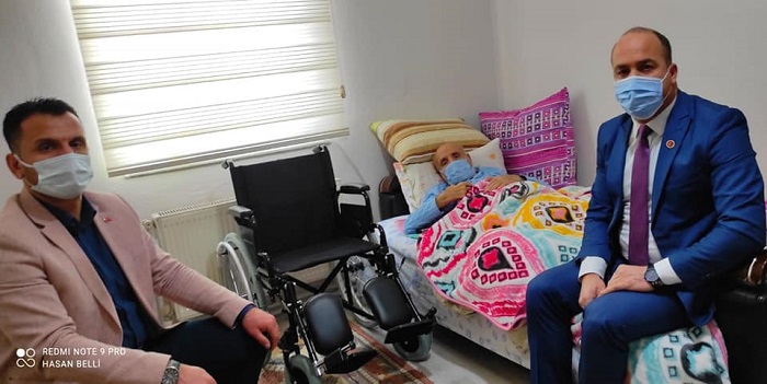 Ceylan’ın temin ettiği tekerlekli sandalye Gülabibey Mahallesi Muhtarı Hasan Belli ve AK Parti mahalle temsilcisi Osman Çorlu tarafından Şükrü Özkader’e iletildi.
