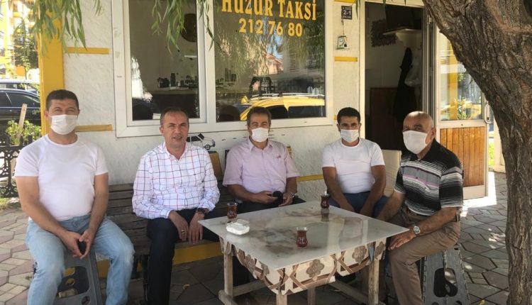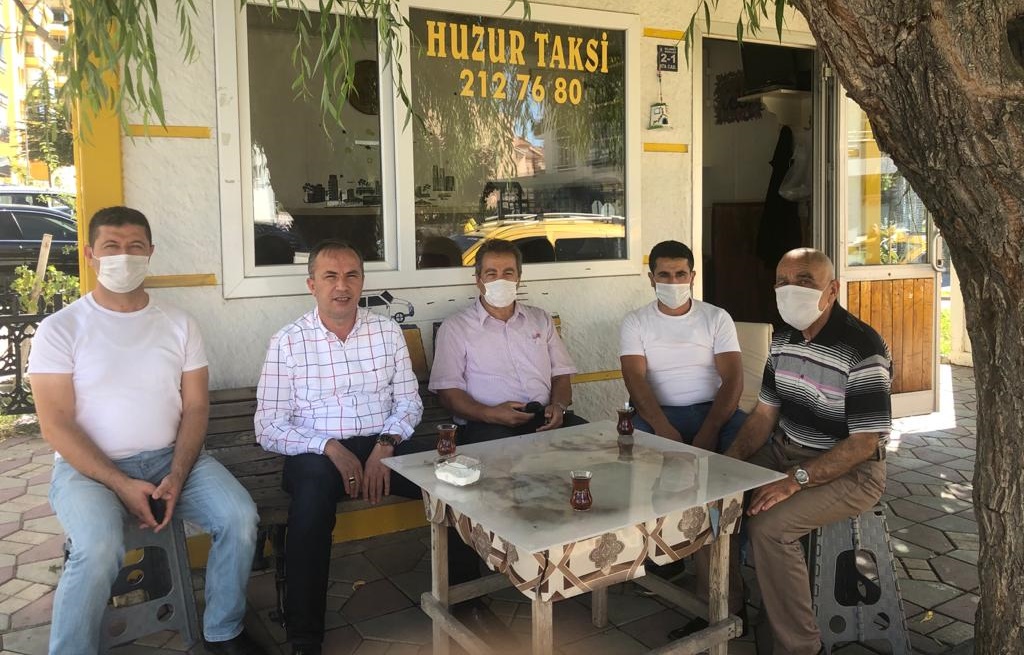 Gülabibey Mahallesinde bulunan Huzur Taksi durağındaki taksici esnafı ziyaret eden Ceylan, AK Parti olarak korona virüs nedeniyle zor günler geçiren esnafın her zaman yanında olduklarını söyledi.