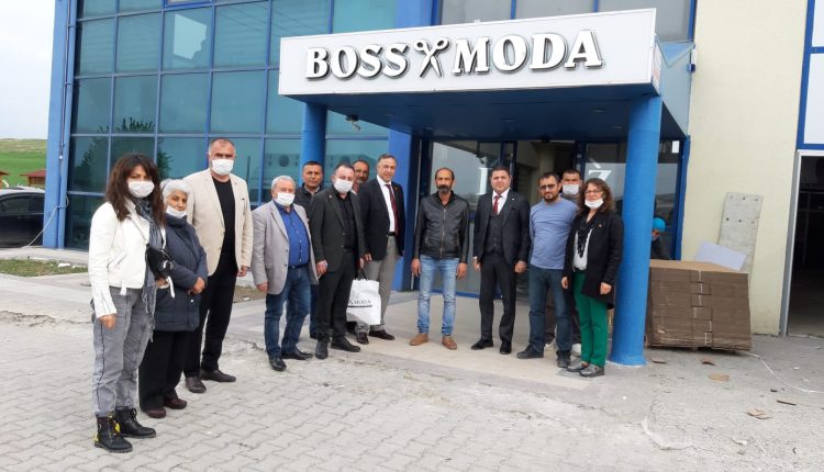 Fabrika yöneticileri Sedat Karaağaç ve İbrahim Çetintürk ile birlikte bir süre sohbet eden CHP heyeti, koronavirüs sürecinde halkın ve sağlık çalışanlarının maske, tulum başta olmak üzere tüm tıbbi malzeme kıyafetlerini karşılaşan Boss Moda ailesine teşekkür ettiler.