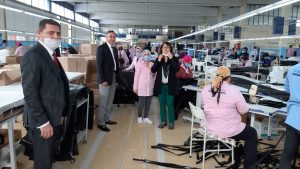 Ankara Yolu üzerinde tekstil ürünleri, üniforma ve resmi kıyafet ile tıbbi malzeme üretimi yapan firmayı ziyaret eden CHP heyeti, fabrika yöneticileri ve işçilerle sohbet ederek, kolaylıklar diledi.