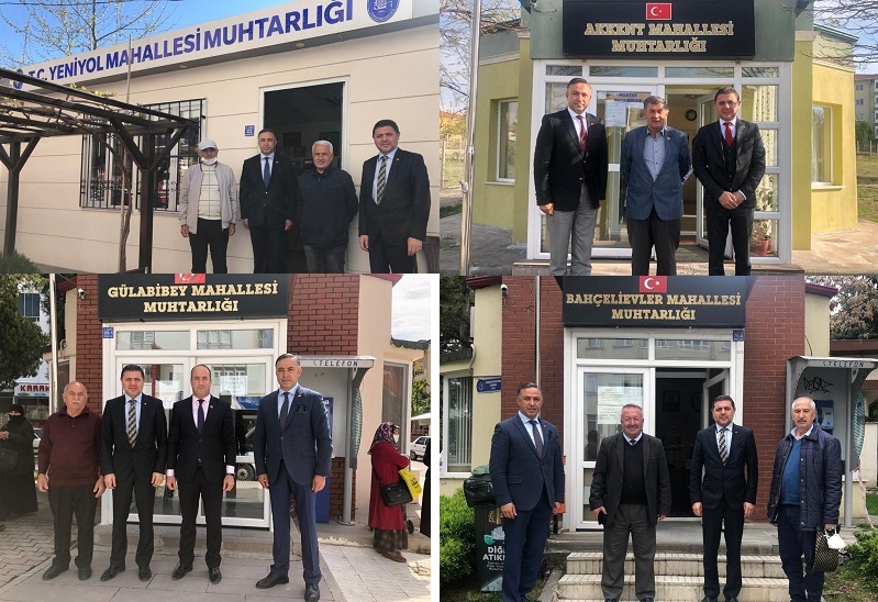 CHP’li yöneticiler; Üçtutlar Mahallesi Muhtarı Mehmet Bölükbaş, Yavruturna Mahallesi Muhtarı Metin Kaşar, Ulukavak Mahallesi Muhtarı Hanefi Özdemir, Karakeçili Mahallesi Muhtarı Mehmet Aydın, Buharaevler Mahallesi Muhtarı Ümit Patıroğlu, Yeniyol Mahallesi Muhtarı Seydi Demiray, Bahçelievler Mahallesi Muhtarı Hasan Kızıltepe, Kale Mahallesi Muhtarı Ali Şahin, Gülabibey Mahallesi Muhtarı Hasan Belli, Mimarsinan Mahallesi Muhtarı Fevzi Şeker, Akkent Mahallesi Muhtarı Necip Güler, Çöplü Mahallesi Muhtarı Yılmaz Kılcı, Çepni Mahallesi Muhtarı Mehmet Şahinbaş, Kunduzhan Mahallesi Muhtarı Kadir Akçal ve Bayat Mahallesi Muhtarı Fikret Külcü’yü ziyaret etti.
