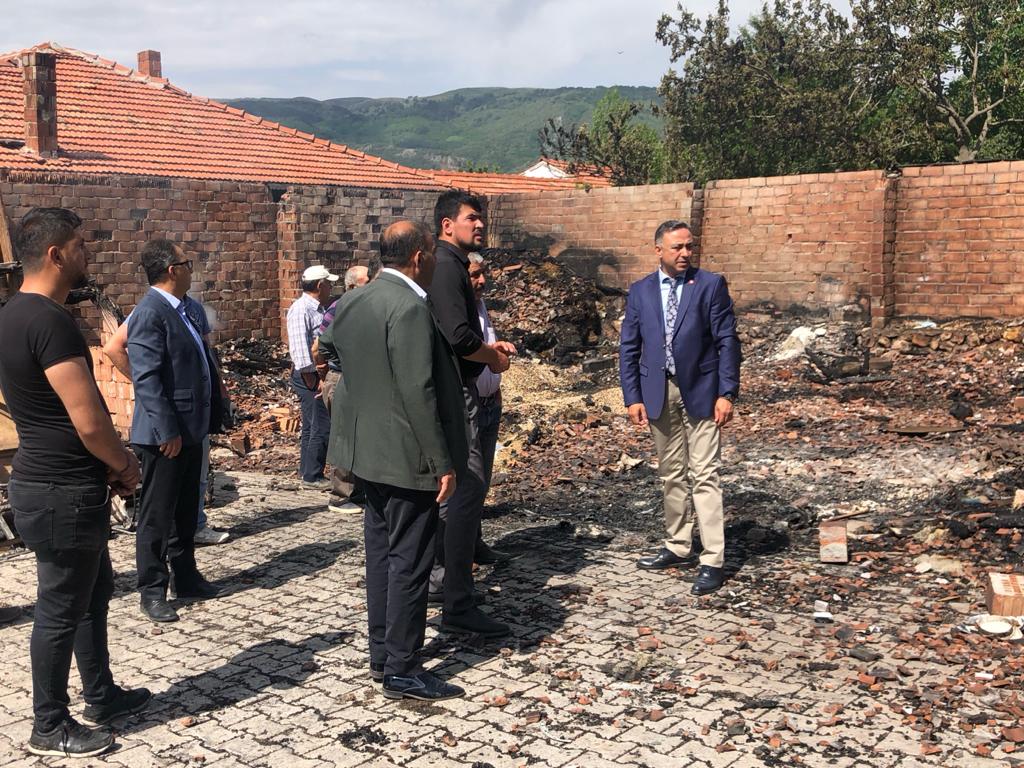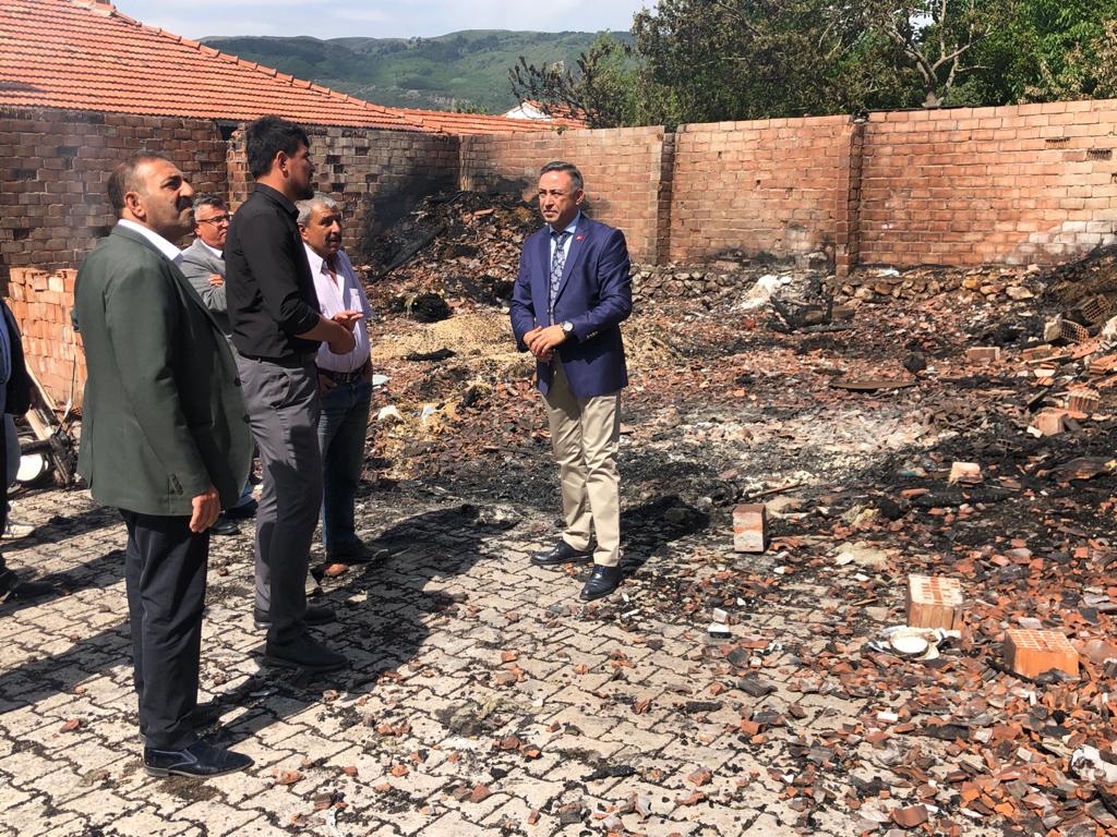 Tahtasız ve beraberindeki partililer, Necip Gençay ve diğer köy halkına geçmiş olsun dileklerini ileterek yangın yerinde incelemelerde bulundu.