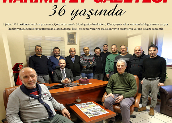 Çorum basınının köklü yayın organlarından Hakimiyet Gazetesi, 36’ncı kuruluş yılını kutluyor. 35 yılı geride bırakan gazete, yeni yaşına girerken yayın ilkelerinden ödün vermeden yoluna devam etmenin gururunu yaşıyor.