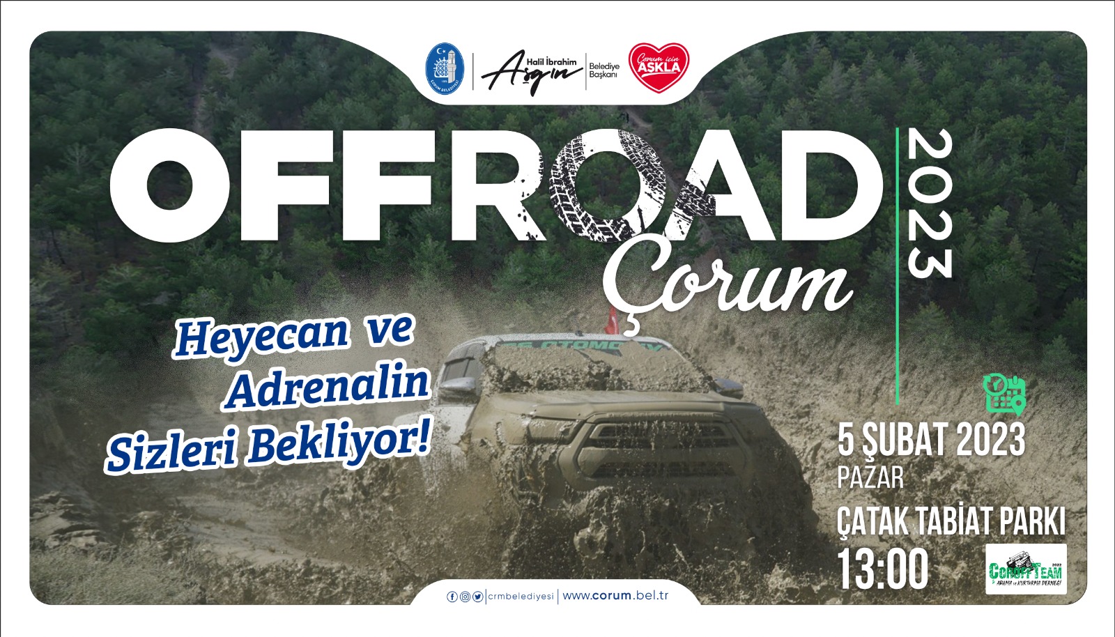 Çorum Belediyesi ve Çoroff Çorum Off Road ve Arama Kurtarma Derneği işbirliğinde düzenlenecek etkinlikte Türkiye’nin dört bir tarafından off-road tutkunları bir araya gelecek.