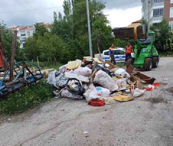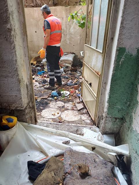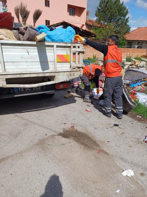 Evin çöp yığınıyla dolu olduğu fark eden ekipler, temizlik işleri müdürlüğü ekiplerinin desteğiyle müstakil evde çalışma yapıldı. Çöp evden, eski ev eşyaları, tekstil ve plastik malzeme gibi artıklardan oluşan 5 kamyon çöp çıkarıldı.