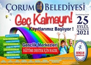 Çorum Belediyesi Gençlik Merkezlerinde yeni dönem kayıtlar 25 Eylül Cumartesi saat: 09.00’da başlıyor.