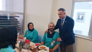 Hemşireleri öğle yemeğinde ziyaret ederek günlerini kutlayan Tahtasız, “Hemşireler; din, dil, ırk ayrımı gözetmeksizin birey, aile ve topluma sağlığını kazandırmak için çalışan, mücadele eden çok özel kişilerdir” dedi.