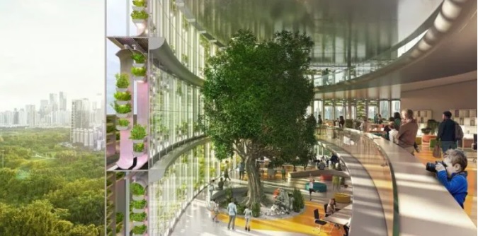 Tasarım, doğal ve yapayın yakından örtüştüğü yeni bir gökdelen türü sunuyor. Binanın tasarımı, bina kiracılarının doğrudan kulenin içinde taze sebze ve meyve yetiştirmesini, satın almasını ve tüketmesini mümkün kılıyor.