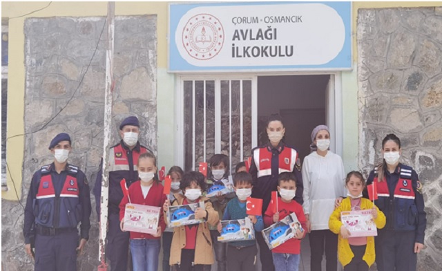 Çorum İl Jandarma Komutanlığı, Osmancık ilçesine bağlı Avlağı Köyü İlkokulunda eğitim gören öğrencinin 23 Nisan Ulusal Egemenlik ve Çocuk Bayramını kutlamak maksadıyla ziyaret gerçekleştirdi.