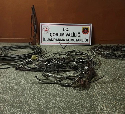 Çorum Cumhuriyet Başsavcılığının talimatı doğrultusunda Jandarmanın Dedektifleri JASAT (Jandarma Suç Araştırma Timi) ve Ortaköy İlçe Jandarma Komutanlığı ekiplerince yapılan araştırma ve inceleme neticesinde, Ortaköy ilçesi Yaylacık köyü olayı yakınlarında tespit edilen 1 şüpheli şahıs çalınan kabloları yaktığı esnada yakalanarak gözaltına alındı.