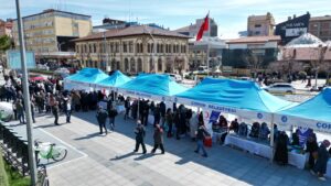 Çorum’da ev hanımları, kadın kültür merkezleri ve sivil toplum örgütlerinin desteğiyle 8 Mart Dünya Kadınlar Günü’nde anlamlı bir etkinliğin gerçekleştiğini dile getiren Başkan Aşgın “Depremzedeler için saat kulesi meydanında iyilik hareketi başlattık. Evlerde ve kadın kültür merkezlerinde üretilen ürünler kardeşlik çarşısında depremzedeler yararına satışa çıkarıldı. Çorum halkımızdan bu kermese ürün getirerek veya satın alarak destek olmaya davet ediyorum. Kermes 3 gün boyunca saat 11.00 ile 18.00 saatleri arasında açık olacak. Tüm hemşehrilerimizi bu iyilik hareketine destek vermeye davet ediyorum.” dedi.