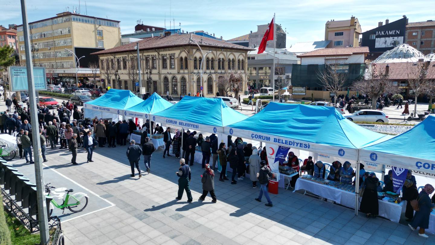 Çorum’da kadınlar 8 Mart Dünya Kadınlar Günü’nü anlamlı bir etkinlikle kutluyor. Çorum Belediyesi’nin öncülüğünde saat kulesi meydanında kardeşlik çarşısı kermesi açıldı. Kıyafet, gıda ve el işi ürünlerinden oluşan kermes 3 gün boyunca 11.00 ile 18.00 saatleri arasında açık olacak. Kermesten elde edilen gelirler depremzedelere ulaşacak. Belediye Başkanı Dr. Halil İbrahim Aşgın yaptığı açıklamada Çorum halkının depremin ilk anından itibaren her türlü desteği verdiğini belirterek, “7’den 70’e kadınından erkeğine bütün Çorumluklar el birliği ve gönül birliği ile seferber oldu. 160 civarında tır ve kamyonu kendi elleriyle yükleyerek deprem bölgesine gönderdiler. Bu yardımlar devam ediyor.” dedi.