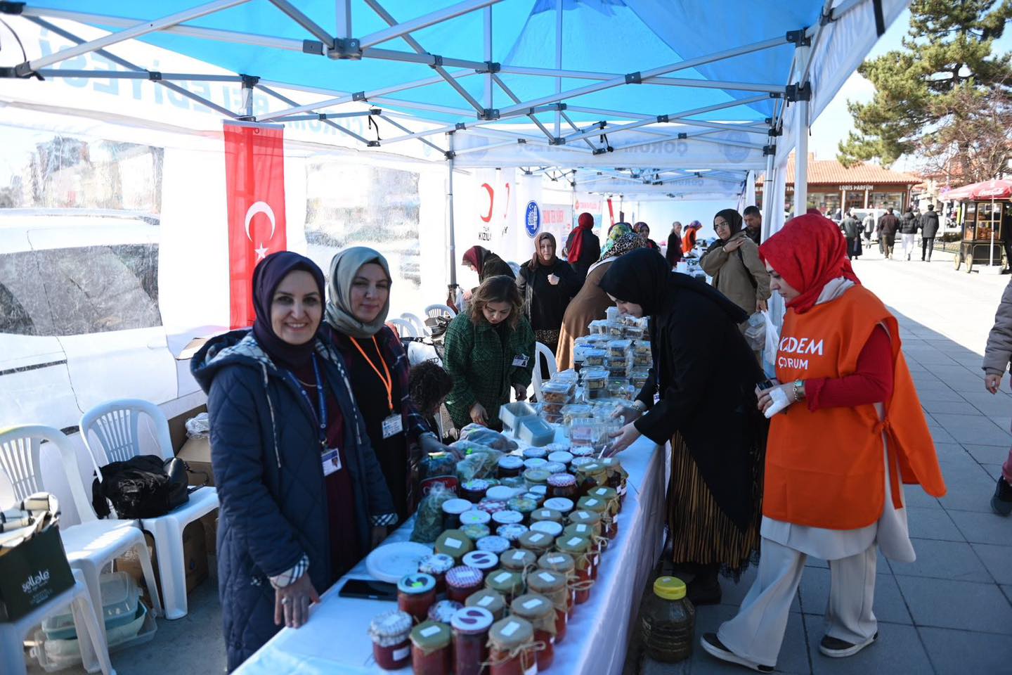 Depremzedeler için “Kardeşlik Çarşısı Kermesi” açıldı. Kadınlar, Çorum Belediyesi’nin öncülüğünde, depremzedeler için tek yürek oldu.