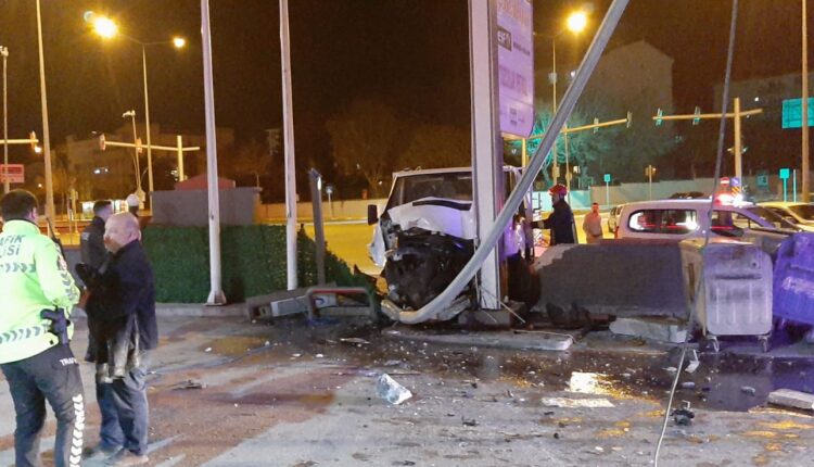 Kaza esnasında benzinlik içerisinde aracının lastiklerine hava basan bir vatandaş ve kamyonet sürücüsü yaralandı.