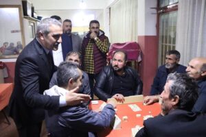 Çorum’un çeşitli mahallelerinde esnafları tek tek gezen Karapıçak, bir süre kahve ve çay bahçelerinde oturarak vatandaşlarla sohbet etti.