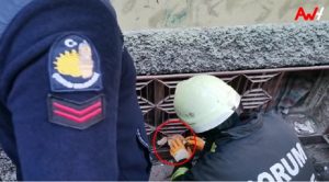 Merkez Üçtutlar Mahallesi Osmancık 1. Sokak’ta bulunan bir evin penceresinin korkuluklarına yavru bir kedi sıkıştı.