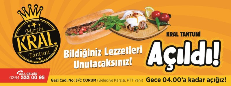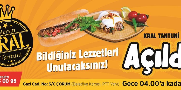 Çorum’un büyüyen markakası kral tantuni Ankara Demetevler ve Ankara Cebeci şubelerinin açılışı sonrasında Çorum Kral tantuni şubesini İnönü cd no: 15’ te yeni konsepti ile açtı. Gösterişli bir açılış gerçekleşirken ve 1 alana 1 Bedava Kampanyasına Çorum Halkı büyük ilgi gösterdi.