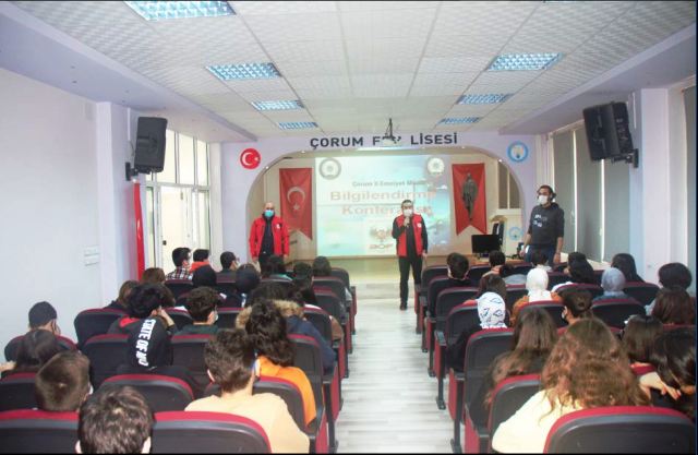 Çorum İl Emniyet Müdürlüğü “Gençlik ve Güvenli Gelecek” projesi kapsamında lise öğrencilerine bilgilendirme konferansı verdi.