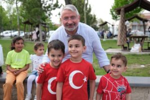 Belediye Başkanı Dr. Halil İbrahim Aşgın da şenliklere katılarak çocuklarla yakından ilgilendi. Başkan Aşgın “Çocuklarımızı en güzel en mutlu bayramlarını birlikte idrak ediyoruz.” diyerek 23 Nisan Ulusal Egemenlik ve Çocuk Bayramı’nı kutladı.