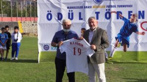 Amatör Spor Kulüpleri Federasyonu (ASKF) Başkan Sefer Kurtaran da spora verdiği katkılardan dolayı Belediye Başkanı Dr. Halil İbrahim Aşgın’a teşekkür ederek forma hediye etti.