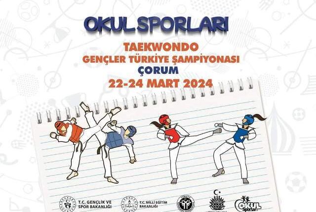 Gençlik ve Spor İl Müdürlüğü Okul Sporları Gençler Kız –Erkek Taekwondo Türkiye Şampiyonası 53 il, 160 Kız, 160 Erkek toplamda 320 sporcunun katılımıyla Yeni Çorum Spor Salonunda yapılacağını bildirdi.