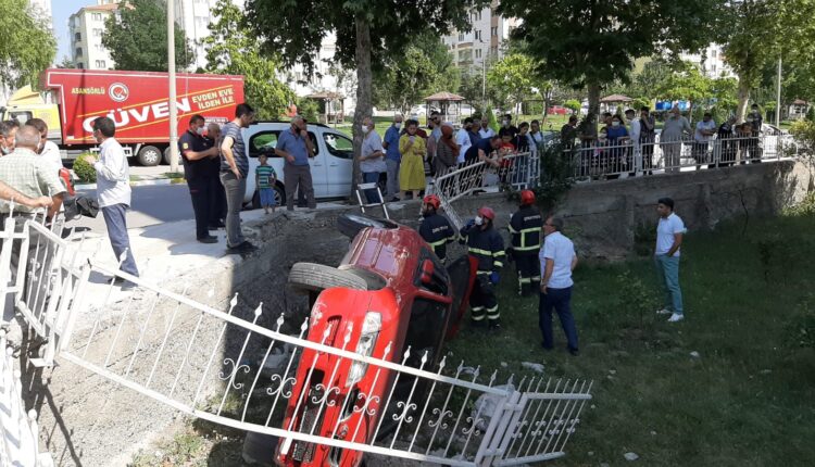 Çorum’da bir binanın bahçesine uçan otomobilin sürücüsü yaralandı.