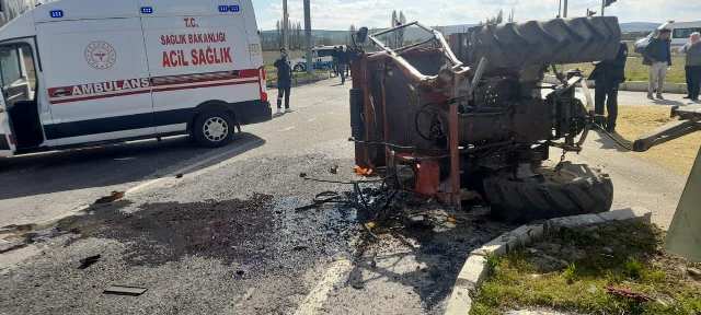 Çorum’un Alaca ilçesinde otomobil ile buğday yüklü traktörün çarpışması sonucu meydana gelen kazada 4 kişi yaralanırken, çarpışmanın şiddetiyle traktör ikiye bölündü.