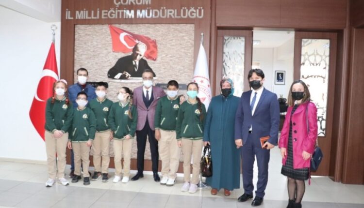 Çorum Gazipaşa Ortaokulu Özel Eğitim Sınıfı öğrenci ve öğretmenleri Ayşenur MARAL YILDIZ ve Salih DEMİRCİ İl Milli Eğitim Müdürü Abdullah KODEK Beyi ve İl Milli Eğitim Müdürü Yardımcısı Tahir DEMİR Beyi ziyarette bulundular. Gazipaşa Ortaokulu Özel Eğitim Öğretmeni Ayşenur MARAL YILDIZ Gazipaşa Ortaokulu özel Eğitim Sınıfı olarak İl Milli Eğitim Müdürümüze yeni görevinde başarılar diledi.Özel öğrencilerimize akademik çalışmaların yanında ”Benim Rengimi Fark Et ! ” projesi kapsamında ki etkinliklerle çocuklarımızın sosyal hayata uyumları,bağımsız yaşam becerilerini geliştirmeyi amaçladıklarını dile getirdi.Ayrıca MEB tarafından yaz tatilinde planlanan ”Telafide Bende Varım” çalışmaları kapsamında çocuklarımızı Çorum Belediyesi ve STK’ların destekleri ile çok farklı etkinliklerle buluşturduklarını dile getirdi. Özel çocuklarımızın bu etkinliklerle hem pandemi psikolojisini atmaya çalıştıklarını hem de bağımsız yaşam becerilerini geliştirmede katkısı olduğunu söyledi. İl Milli Eğitim Müdürü Abdullah KODEK Bey özel öğrencilerle bir arada olmaktan mutluluk duyduğunu söyledi.Özel öğrencilerimizin ihtiyaçlarının temini konusunda MEB olarak her türlü desteği sağlamaya çalıştığını bundan sonrada destek olmaya devam edileceğini dile getirdi.MEM Müdürümüz özel öğrencilerimize ve velileri ile birlikte Amasya iline gezi-gözlem ve inceleme gezisi sözü verdi. Özel Eğitim Sınıf Öğretmeni desteklerinden dolayı MEM Müdürü Abdullah KODEK ve MEM Müdür Yardımcısı Tahir DEMİR Beye teşekkürlerini sunarak Gazipaşa Ortaokulunu ve Özel Eğitim Sınıfımız ziyareti için davette bulundu. MEM Müdürü Abdullah KODEK Bey özel öğrencilerimizin ziyareti için tekrar teşekkür ederek davete en yakın zamanda icabet edeceklerini söyledi.