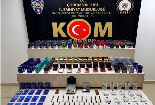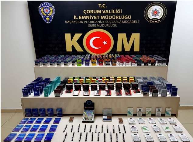 Emniyet Müdürlüğü KOM ekipleri, kent merkezinde bir şahsın işyerinde kaçak sigara ve cinsel içerikli ürün ele geçirdi.