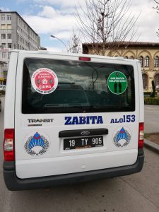 Salgının ülkemize ilk geldiği günden itibaren tedbirleri en üst seviyeye çıkartan Çorum Belediyesi, dezenfeksiyon ve yıkama faaliyetlerinin yanı sıra vatandaşı bilgilendiriyor. “Belediyemizin tüm birimleri koronavirüsle mücadele kapsamında gece gündüz çalışıyor” diyen Belediye Başkan Yardımcısı İsmail Yağbat, “Zabıta personelimizde aynı hassasiyet içerisinde gerek pazarlarda, gerekse ana arterlerde hemşehrilerimize maske ve eldiven dağıtımının yanı sıra kamu kurumlarının önleri, ATM’ler,duraklar ve halkımızın yoğun olarak kullandığı alanlara “Sağlığın için mesafeni koru!, zorunlu olmadıkça evden çıkma” yazılı etiketler yapıştırdık.” dedi.