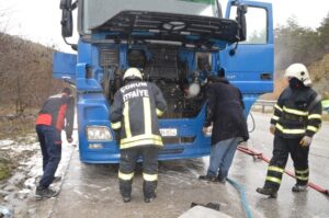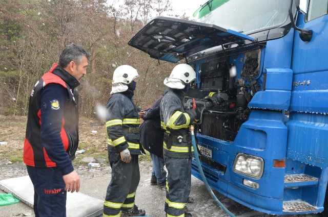 Azeri sürücü Hesenov Elimurad Ezizali’nin kullandığı 11 BH 854 plakalı Tır’ın motor kısmında yangın çıktı.